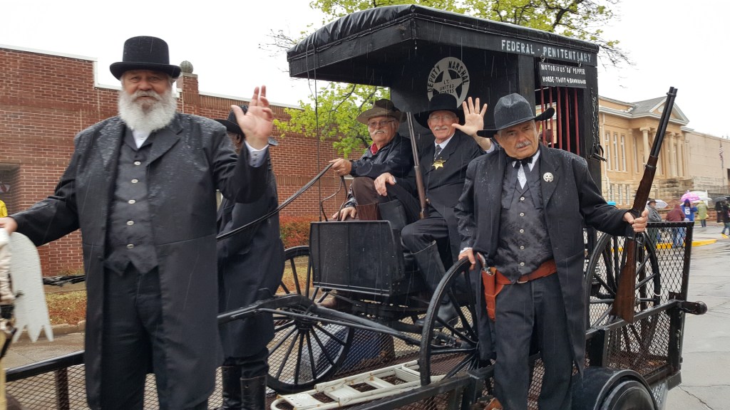 In the days before Statehood in Indian Territory, Judge Parker commissioned marshalls to keep the law in Oklahoma. These were commonly called Guardsmen of Oklahoma, and included many well known names. This Saturday (4/27) we are privileged host at least 10 of these historic characters at the museum. Come see them while touring the “Voices and Votes” Smithsonian exhibit. Open from 10:00 to 4:00. Here is a bit of description of the group: